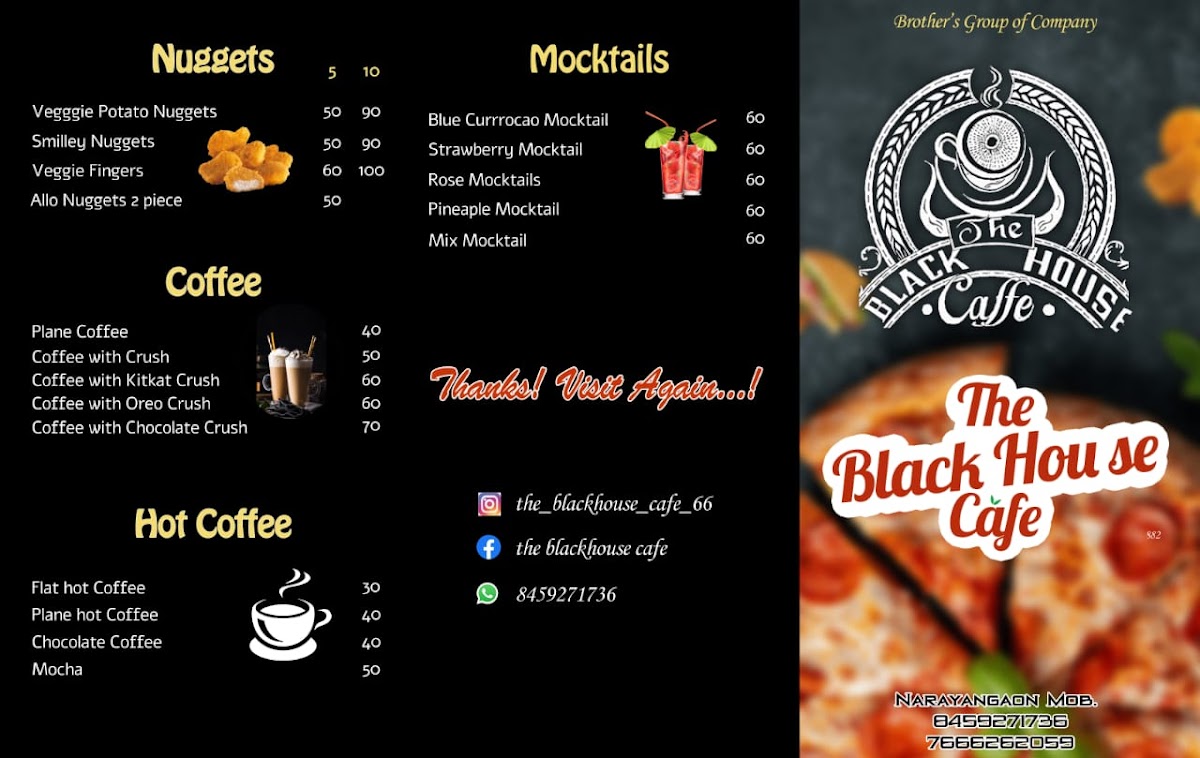 Welcome to The Black House Cafe, a hidden gem nestled in the Surya Lodge building, Narayangaon. This vibrant cafe has quickly become a local favorite, thanks to its warm atmosphere and a diverse menu that tantalizes every palate.